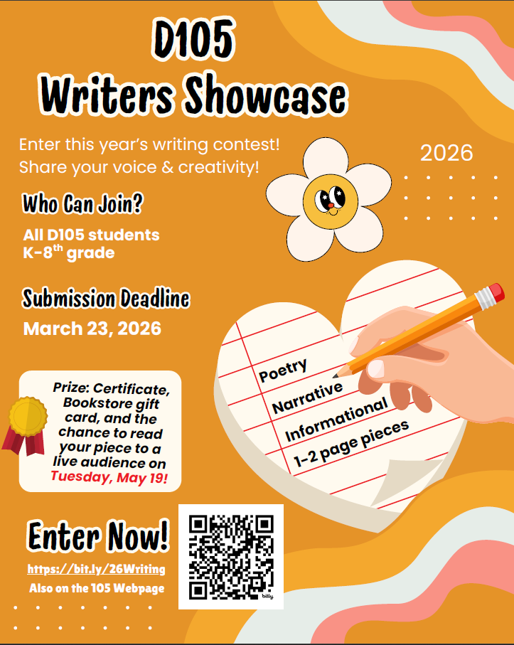 2026 D105 Writers ShowcaseUse the QR code in the flyer below or click here for the entry form.